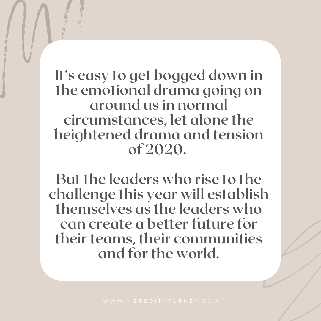 It’s easy to get bogged down in the emotional drama going on around us in normal circumstances, let alone the heightened drama and tension of 2020. But the leaders who rise to the challenge this year will establish themselves as the leaders who can create a better future for their teams, their communities and for the world.