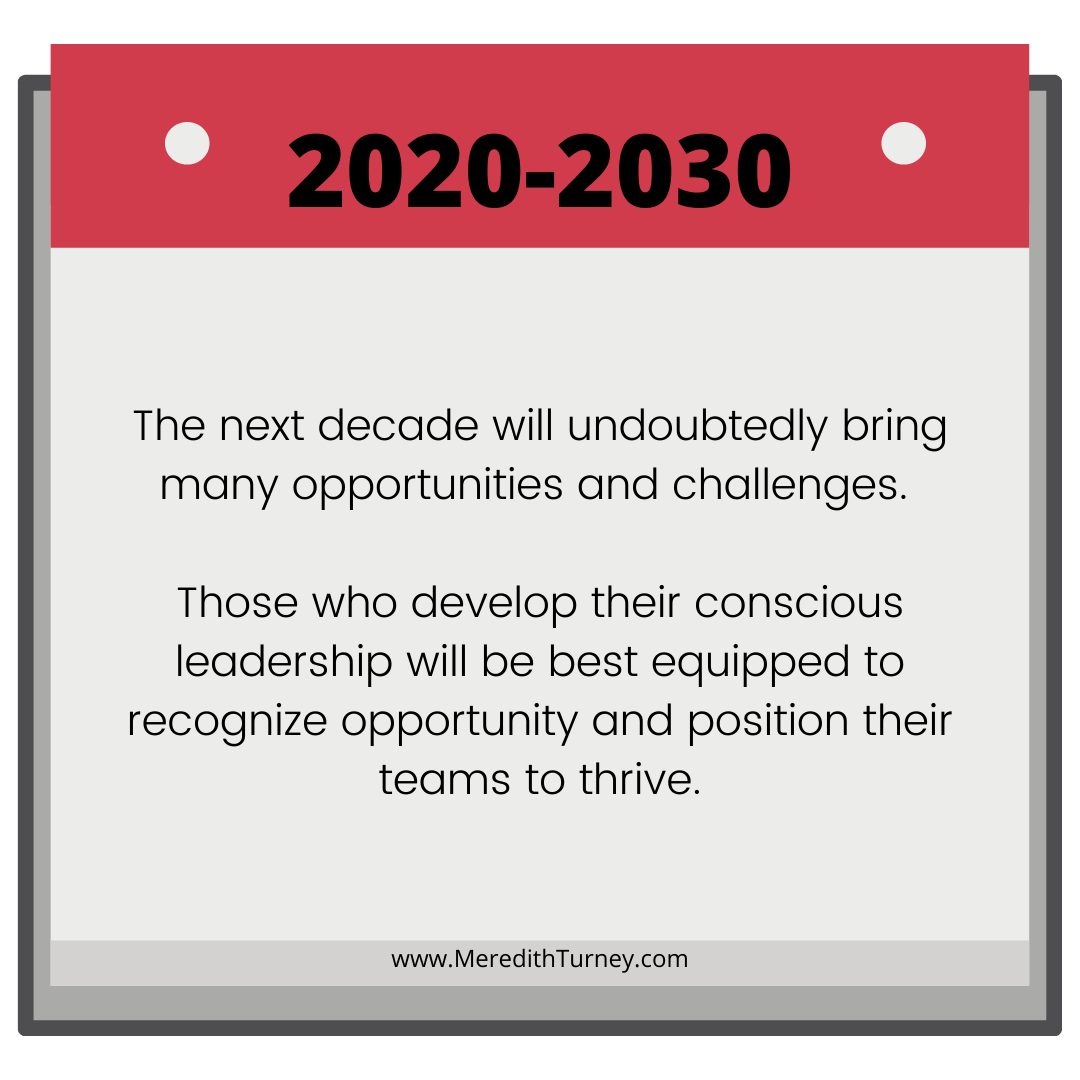 The next decade will undoubtedly bring many opportunities and challenges. Those who develop their conscious leadership will be best equipped to recognize opportunity and position their teams to thrive. One of the reasons I love coaching is I get to work with the leaders and their teams who are courageously building this future. They envision a world with even more opportunity and abundance for all. It’s a future that can’t get here fast enough.